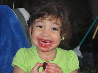 No, she didn’t have her teeth knocked out. She was eating cherries.